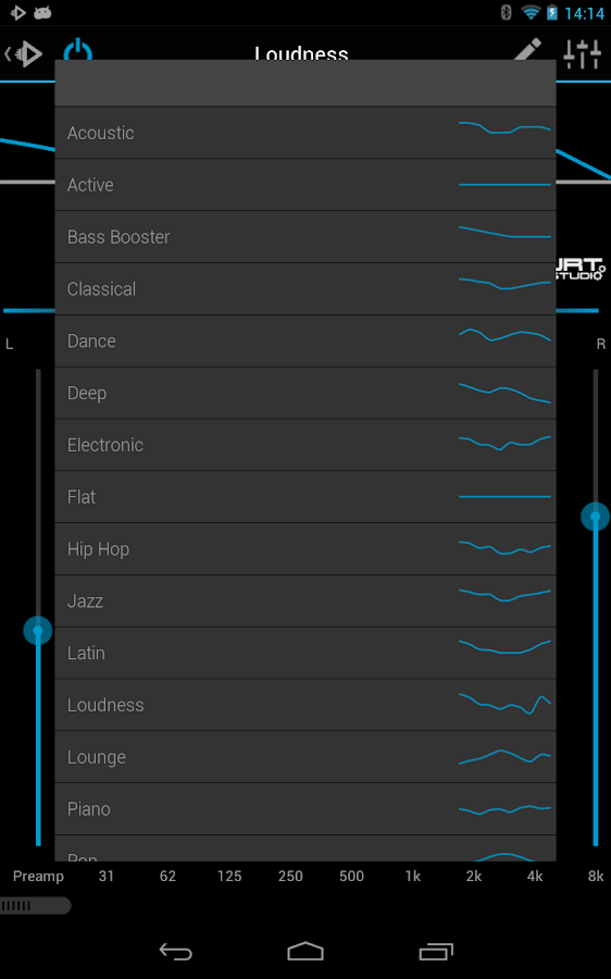 - Kontrol suara dengan 5 band graphic equalizer (Android 2.3 +)